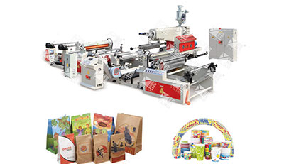 本系列設(shè)備以紙,塑膜,紡織布或鋁箔為基材,通過流延,一次復(fù)合成二層,三層(夾心復(fù)合),廣泛應(yīng)用于食品包裝,藥品包裝等各行業(yè)。如制作口杯,方便面碗,飼料包裝袋,醫(yī)用衛(wèi)材,快餐盒,無紡布袋。
